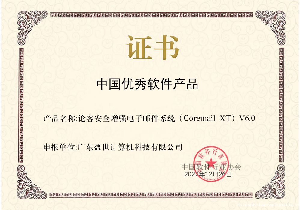 中国优秀软件产品评选由中国软件行业协会主办,旨在发掘并推介优秀软件产品,培育著名软件品牌,为政府采购和大型信息化工程招标项目提供参考,由多位行业专家对全国的参评软件进行评选得出。2022年12月,Coremail XT6邮件系统经过多轮审核评估,最终入选。