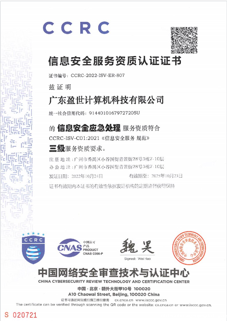 2022年7月,Coremail通过由中国网络安全审查技术与认证中心颁发的CCRC信息安全服务资质认证。