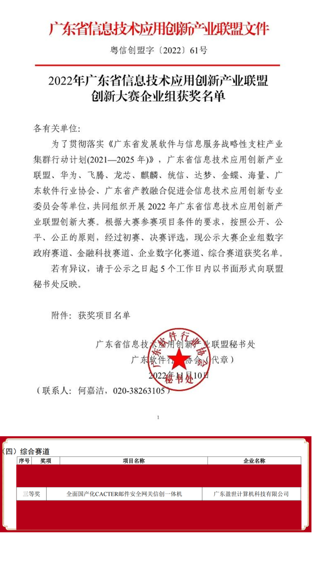 2022 年广东省信息技术应用创新产业联盟创新大赛三等奖