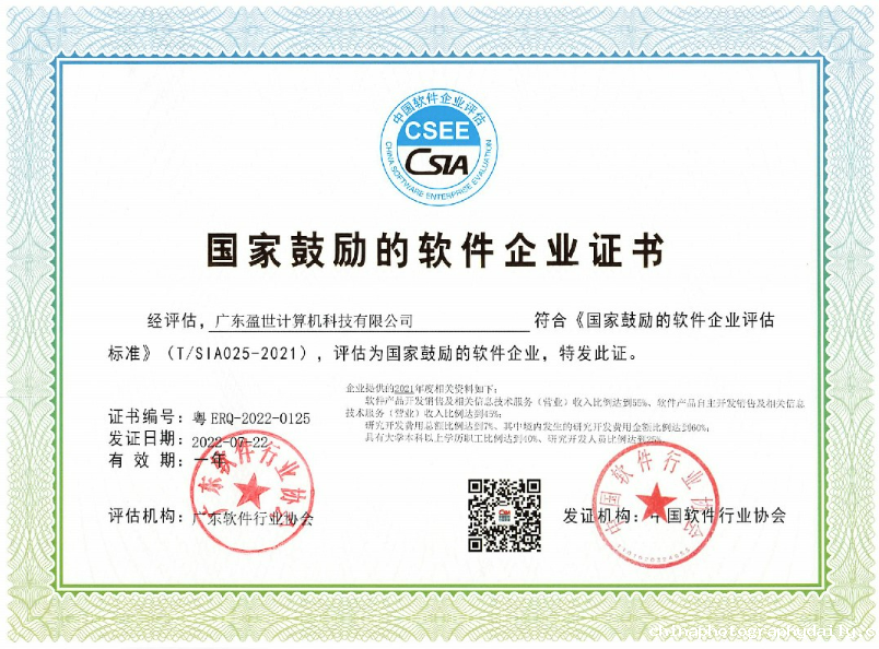 国家鼓励的软件企业证书