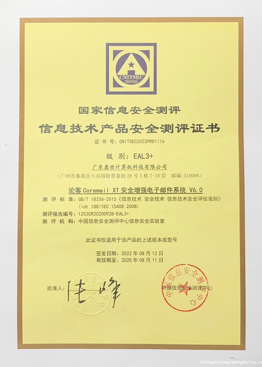 2022年8月,经过严格的信息安全评估,Coremail XT6邮件系统成功获得《信息技术产品安全测评证书》EAL3+级认证。该认证是国家信息安全测评中心依据国家标准 GB/T 18336—2015《信息技术 安全技术 信息技术安全评估准则》从安全目标、开发、指导性文档、生命周期支持、测试和脆弱性评定等多个方面全面评估。